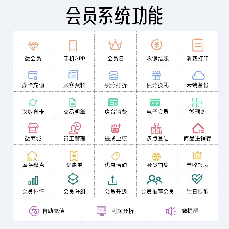 会员管理系统消费提醒 生日提醒 员工账号 优惠券充值卡 次卡